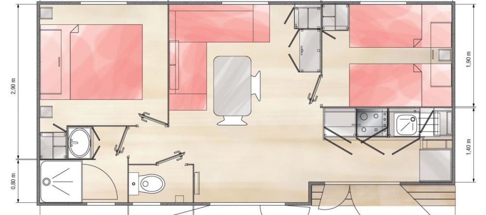 2 chambres offre une solution confortable à travers un espace de vie de 29m² Ce modèle a été étudié pour disposer depuis votre salon et votre cuisine d'une vue sur votre jardin et bénéficier d'une lumière constante à chaque heure de la journée.